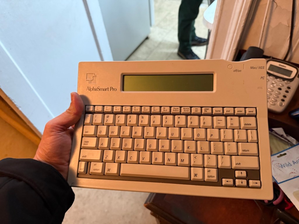 Fast forward to our return home a few days later. I plug the AlphaSmart in and discover there are still two text files on the thing. I have no idea how long they have been there…the AlphaSmart Pro was sold between 1995 and 1997, and I have no information on the previous owner other than what was in the files.